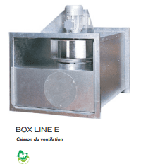 [vc_row][vc_column][vc_column_text]Caisson de ventilation centrifuge équipé d’une turbine métallique à réaction, aspiration simple ouïe avec moteur à entraînement direct. Les gammes BOX LINE E et Q et QI permettent un fonctionnement continu avec un flux d’air de jusque 110 ºC , avec un Moteur triphasé, IP55. Isolation électrique classe F. les diamètres varie entre 315 mm à 800 mm .[/vc_column_text][/vc_column][/vc_row]