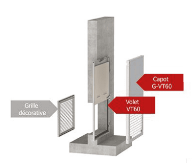 Cette gamme de volets innovant utilisé comme volet de transfert dans IGH et en Habitat est certifié NF, testé selon la norme NF-S-61-937-1 et classé EI60(si feu coté couloir) . elle se distingue par son installation rapide et sa section nette optimale en réduisant les pertes de charges. L’ajout un kit grille technique (G-VT60) ou un Kit encastré (E-VT60) en option est possible.